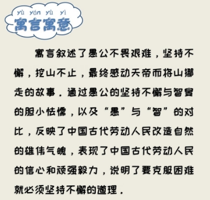 There are many traditional stories in China. Among all of the stories, I like YuGong moves the mountains best.