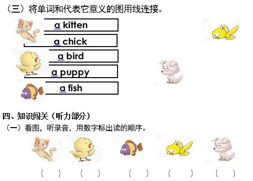 bird 小鸟 puppy 小狗 fish 小鱼 chick 小鸡 kitten 小猫 animals 动物
